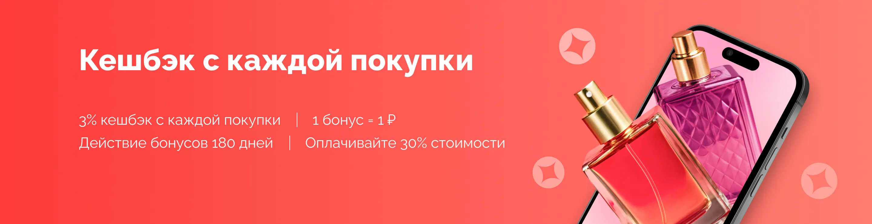 2.2. Бонусные рубли начисляются в размере 3% от суммы, потраченной на приобретение товаров в интернет-магазине De-parfum.